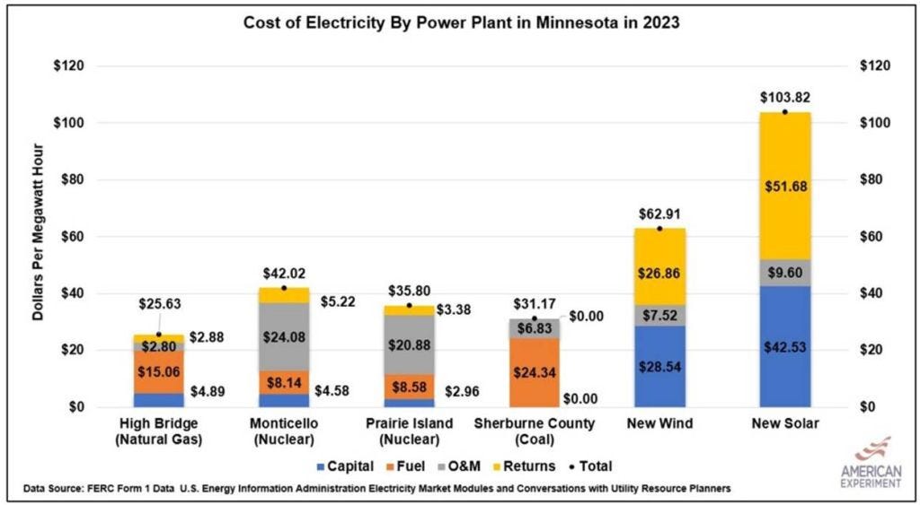 If policymakers were honest about the costs of wind and solar, they would invite transparency into system-wide costs instead of citing the Lazard LCOE as gospel and repeating the tired refrain that “wind and sunshine are free.” Minnesota would keep what works, continuing to operate paid-for coal and natural gas plants through the end of their useful life, which have tremendous reliability attributes that wind and solar can’t match. And Minnesota would repeal its moratorium on new nuclear construction, to allow for zero-carbon energy generation that is reliable and dispatchable.